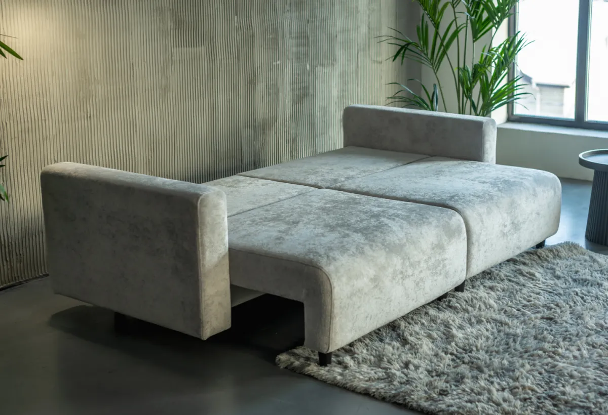 Этот диван не кричит о себе, но сразу чувствуется: он сделан на совесть. Лаконичные формы, прочный каркас из ДСП, ДВП и сосновых брусков — всё для того, чтобы прослужить долгие годы. Механизм трансформации на металлических направляющих работает без нареканий, а наполнение из пружинных блоков и ортопедического поролона не даст спине устать. Здесь нет ничего лишнего — только то, что действительно нужно для комфорта.